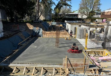 Bearbeitung einer Tiefgarage mit Flügelglätten für eine glatte und widerstandsfähige Betonoberfläche.