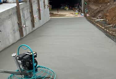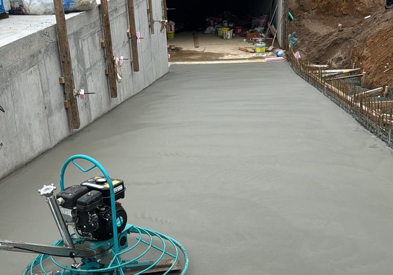 Betonglätten einer Bodenfläche für eine Autogarage – glatt, belastbar und langlebig.