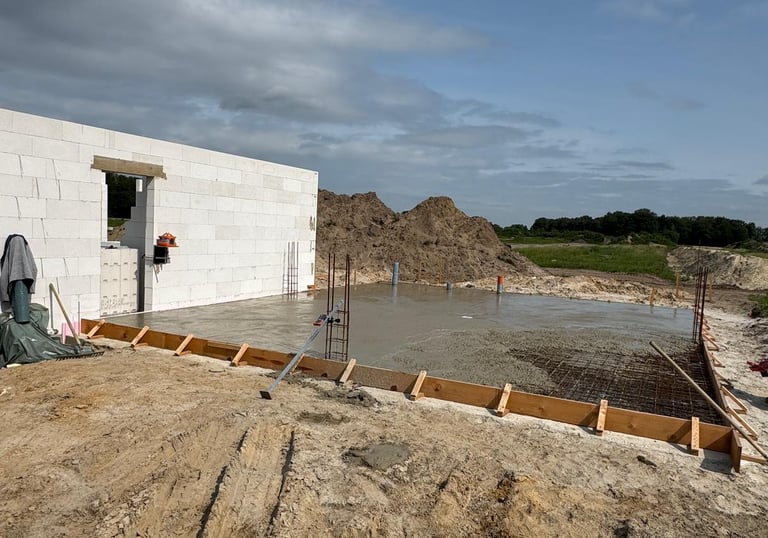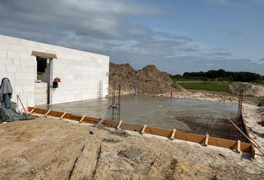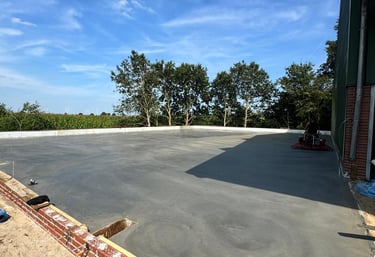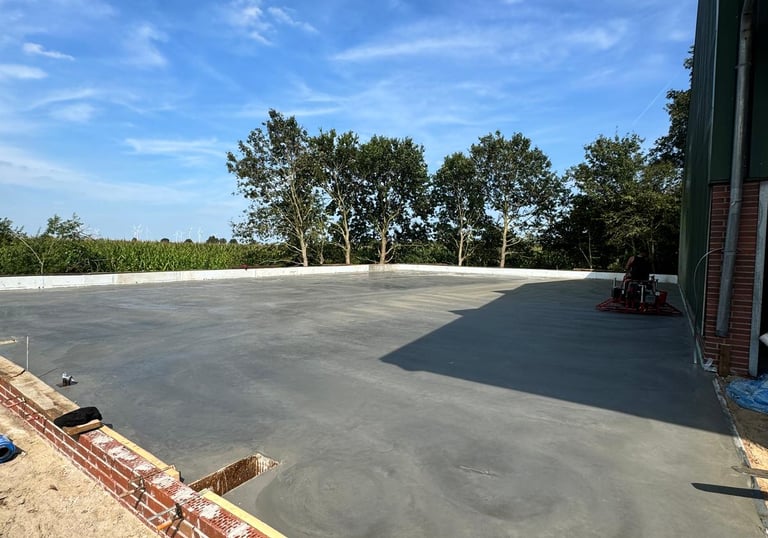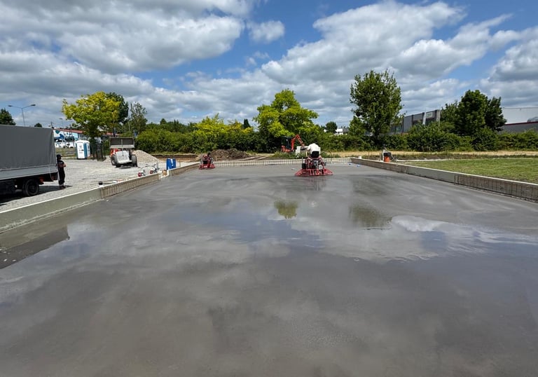 Ausführung einer Bodenplatte für eine neue Halle mit fachgerechtem Betonglätten.