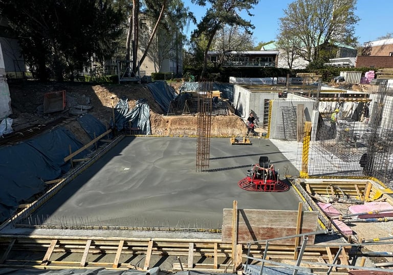 Ausführung einer Bodenplatte für eine neue Halle mit professionellem Betonglätten.