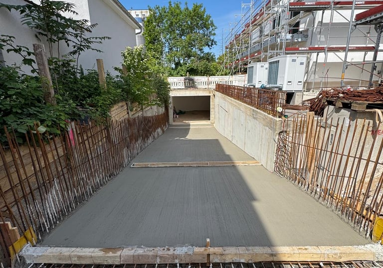 Ausführung von Tiefgarageneinfahrten mit Gefälle und fachgerechtem Betonglätten.